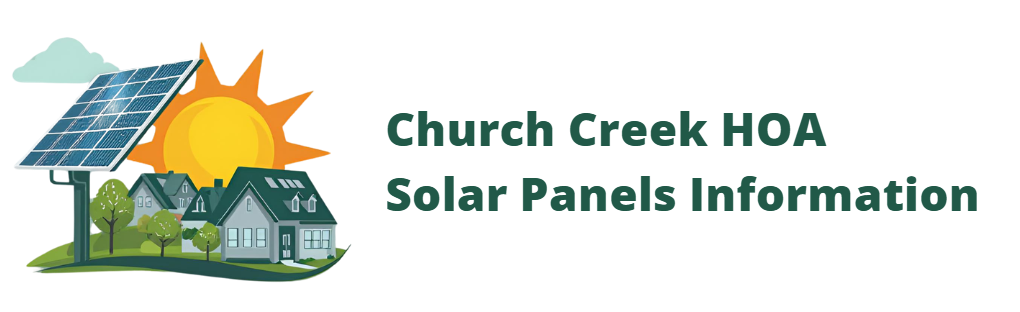 Recently, concerns were raised with the board regarding the installation of solar panels. After consultation, we determined that it is unlawful for an HOA to restrict such action under House Bill 65. If you plan to install panels, please remember you must contact the HOA via email (churchcreekhoa@gmail.com) before any installation occurs.